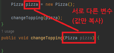swap 메서드는 두 개의 변수를 파라미터 인자로 받았고, main 메서드에서 swap(a, b) 호출을 했다. 이때, a와 b의 값을 변경하는 것이 아니라 a와 b의 값의 복사본을 변경한 것이다.