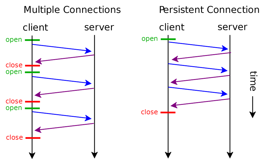 웹 서버와 웹 브라우저가 연결이 되었을 때 KeepAlive 기능이 꺼져 있으면, 매번 HTTP 연결을 맺었다 끊었다 하게 된다. HTTP는 connection less의 상태로 되어 있는데, 여러 클라이언트의 접속을 원활히 하기 위해서 서버를 계속 연결하는 방식을 채택하였다.