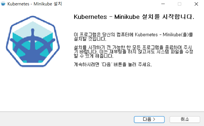 2. download된 폴더로 들어가 minikube-installer.exe 파일을 실행한다.