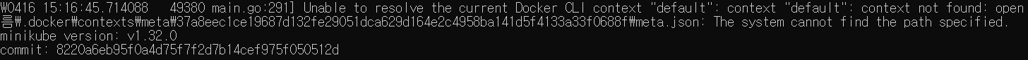 Unable to access Minikube! message starting miniKube worries me: "Unable to resolve the Docker CLI context" "The system cannot f